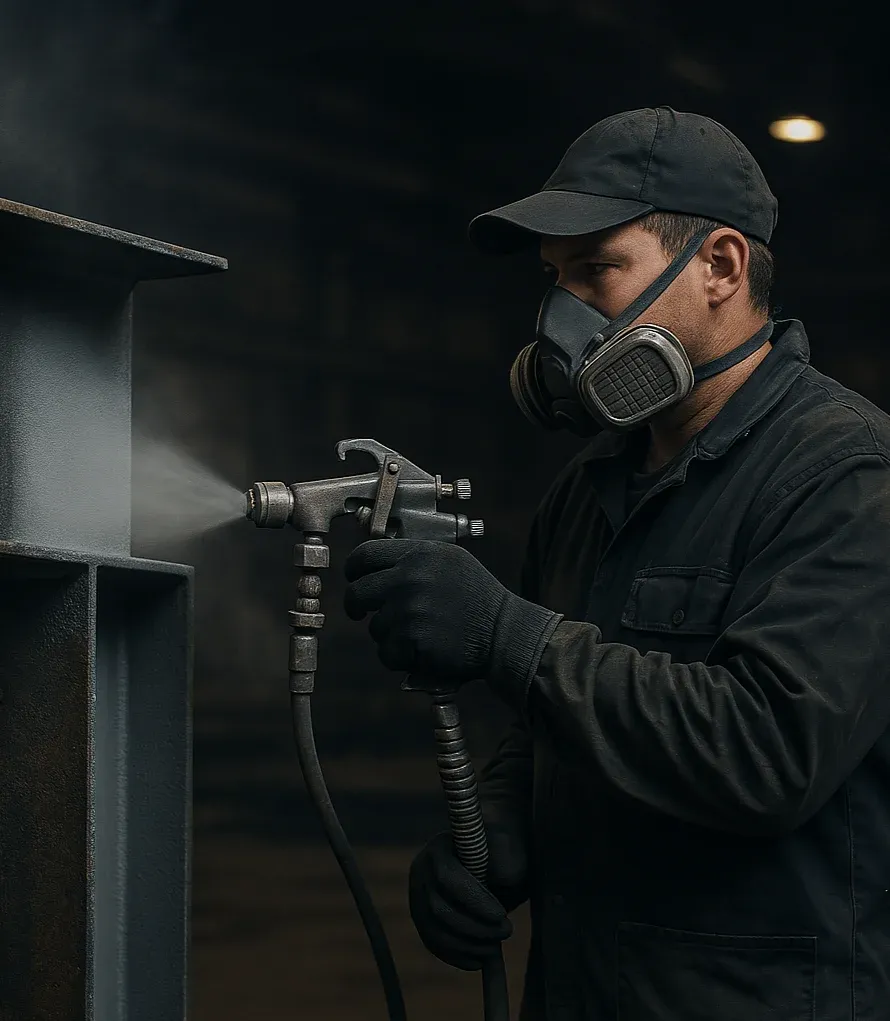 - Custom application systems – For wet coatings (alkyd, epoxy, polyurethane, etc.), we use airless spray application tailored to specific operational conditions.
